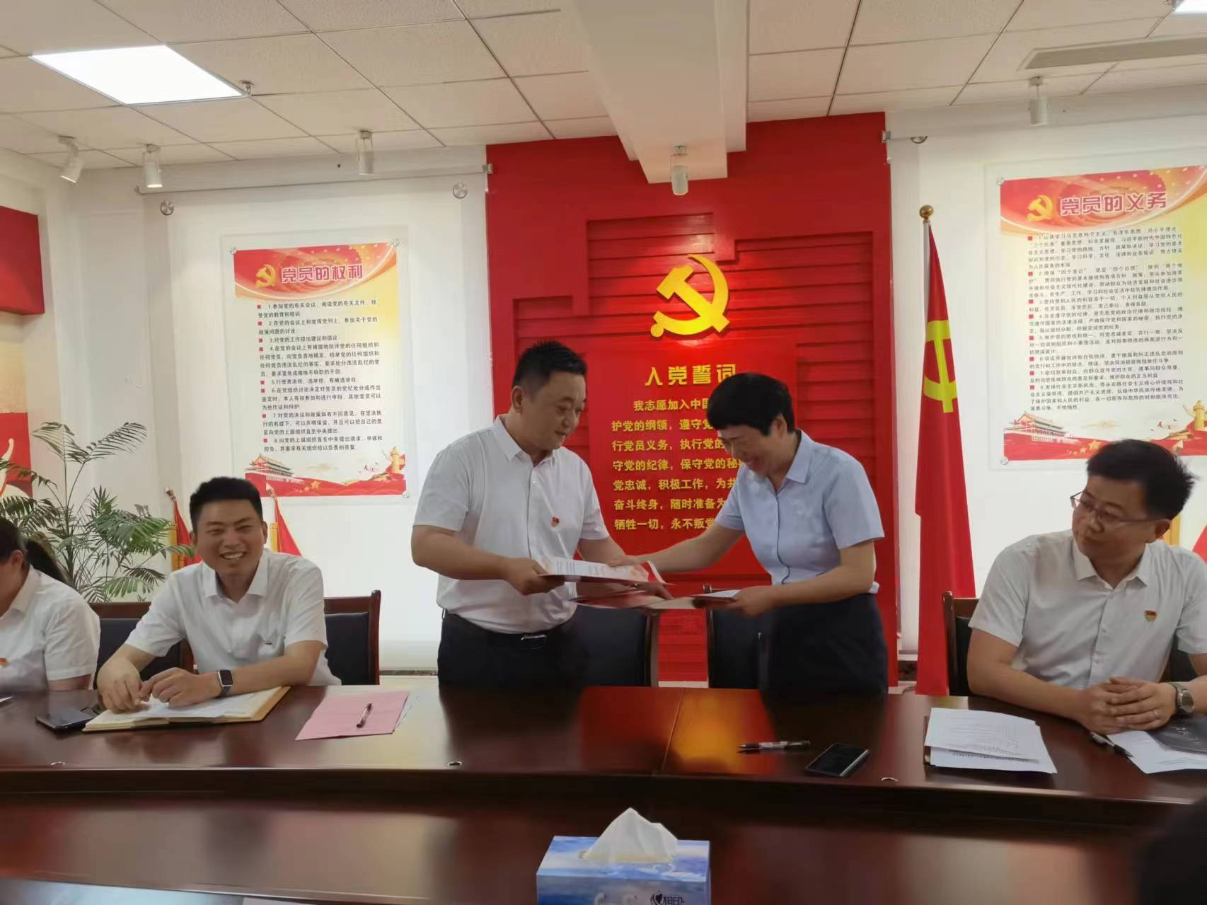 会上,双方分别介绍各自党建工作的基本情况、模式和党建工作亮点,并对今后党建共建工作提出建议意见。双方一致认为,此次党建共建活动是一个新的起点,要充分利用双方平台优势和资源优势,实现共同进步、共同发展,打造“党建引领、资源共享、优势互补、务实高效、互惠共赢”的党建共建新格局,开启“公积金+金融”党建共建新模式。双方签订了《党建共建倡议书》,就新型融合共建党支部的下一步发展提出了意见及建议。